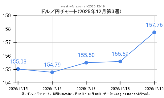 12月第3週のドル円は、米金利動向と日銀会合を背景に大きく円安方向へ振れました。